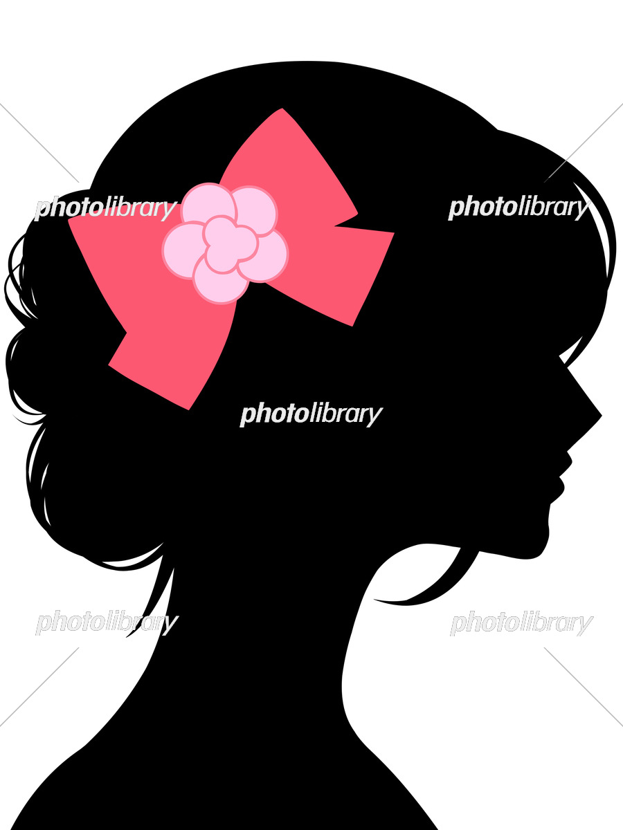 ポニーテールの女性の横顔 シルエット リボンイラスト素材7151053- フォトライブラリ。