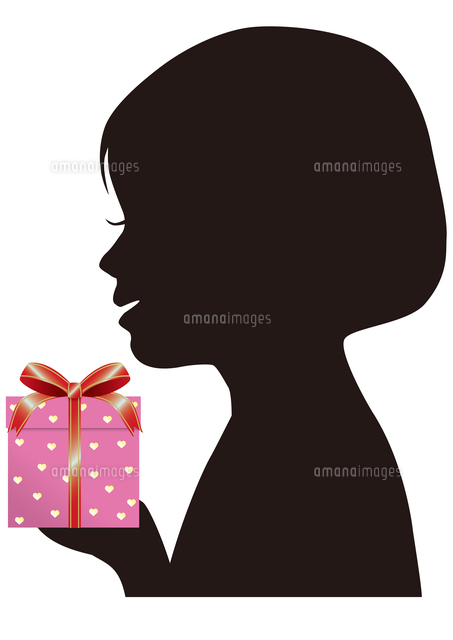 プレゼントをもった女の子シルエットのイラスト素材FYI07835342ストックフォトの Qlean Market キュリンマーケット。