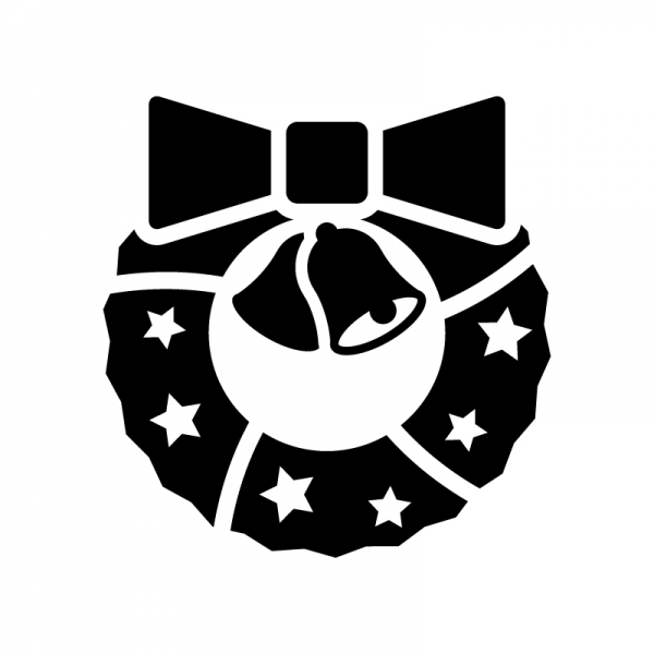 リボンとベルのクリスマスリースのシルエット03無料のAi・PNG白黒シルエットイラスト。