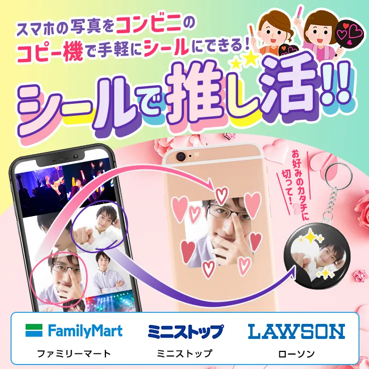 スマホでステッカー作成、コンビニでプリント!スマホアプリ『コンビニシール倶楽部』オリジナルのシールが作れちゃう!手軽にコンビニで印刷!LAWSON &Family Mart対応。