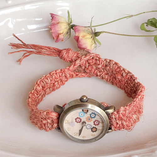 時計モチーフ ヘンプ くすみ赤 ブレスレット ブレスレット ちいさなうさぎ 通販 16384791Creema クリーマ。
