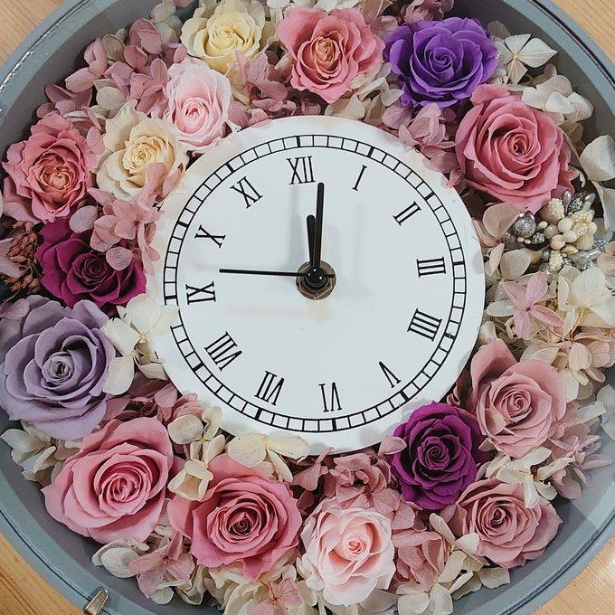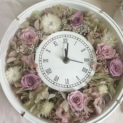 たっぷり プリザのお花の時計🌟くすみピンク系🌟送料無料 「母の日」「お祝い」。