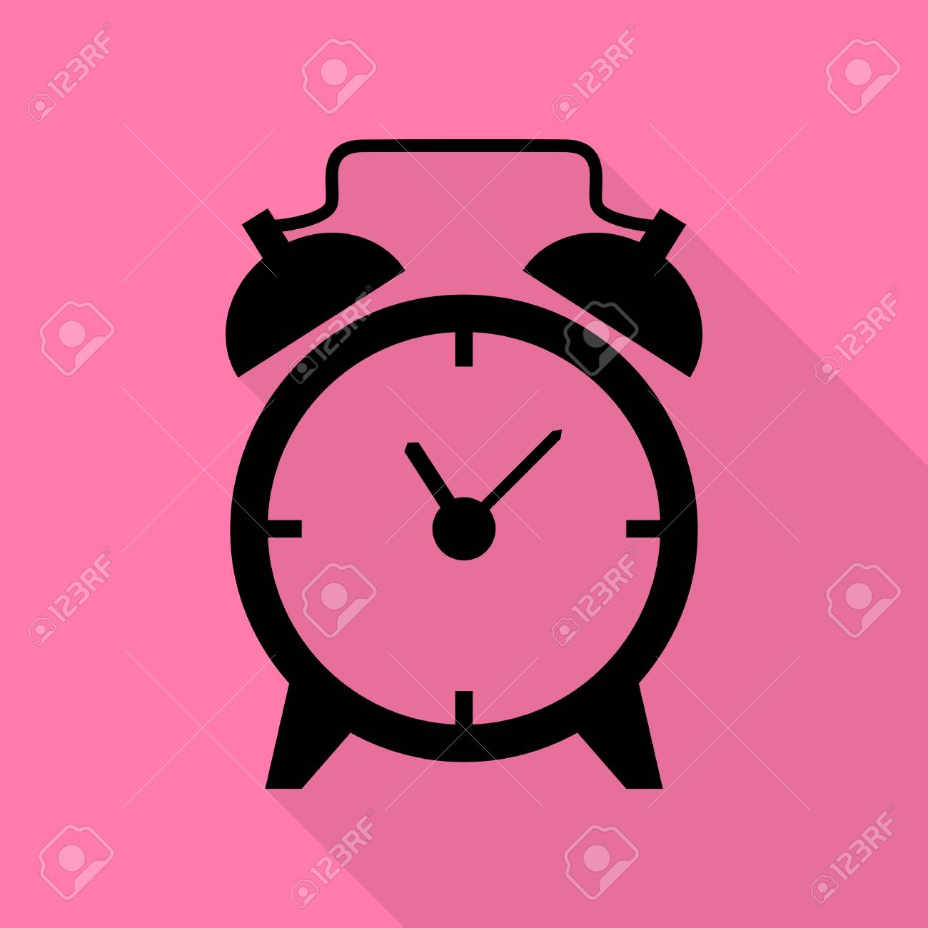 目覚まし時計の標識です。ピンクの背景にフラット スタイル シャドウ パスと黒のアイコン。のイラスト素材・ベクター Image 72029666。