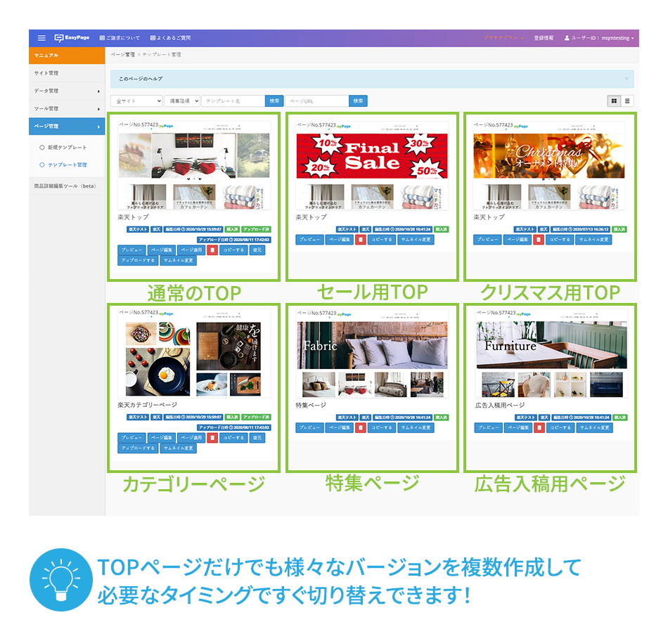 楽天新店舗トップページへの移行、構築請負楽天ショップ用テンプレート販売。