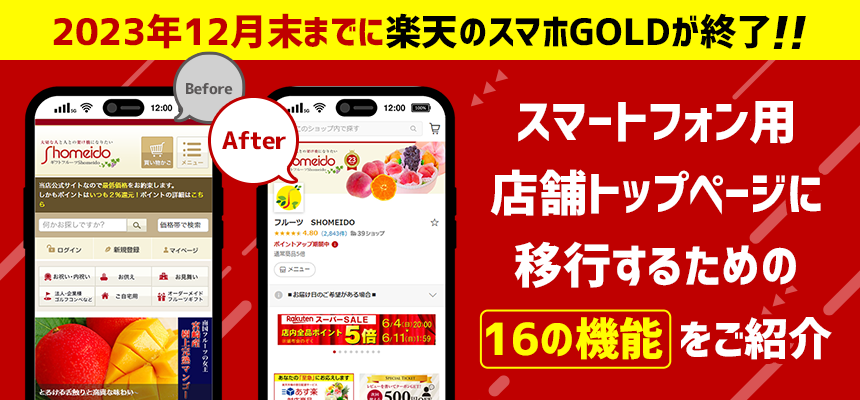 2023年12月末までにスマートフォン用楽天GOLDが提供終了!新店舗トップページ に移行するための16の機能をご紹介 事前申請で2023年8月2日に自動移行も CMAブログ株式会社シーエムエ。
