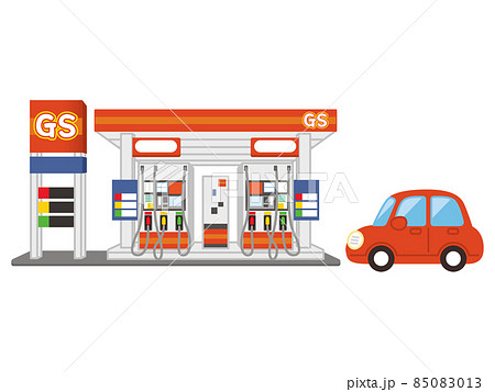 ガソリンスタンドと乗用車のイラスト素材85083013- PIXTA。