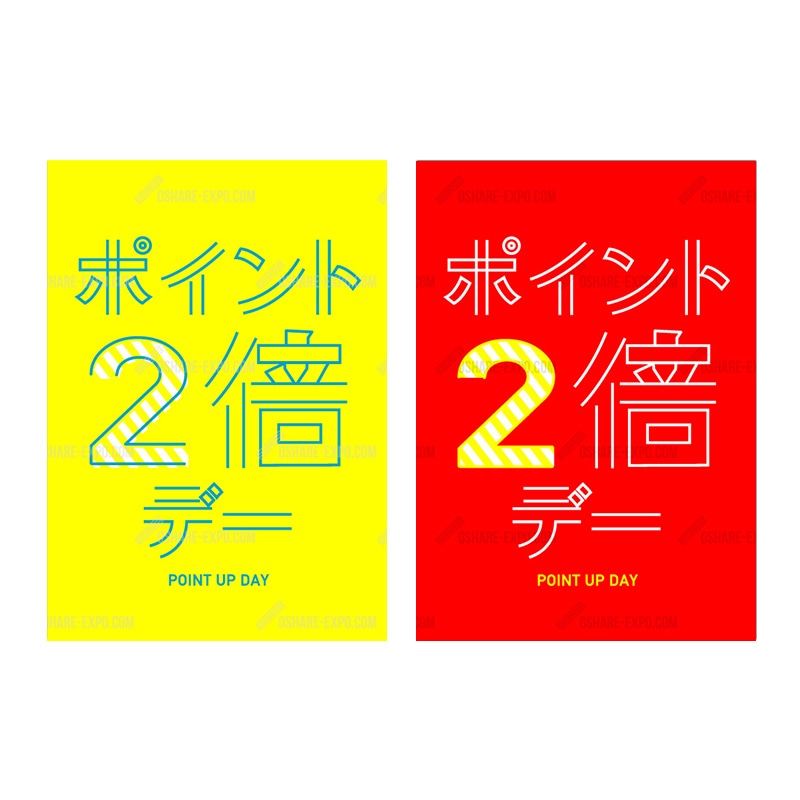 2重線文字デザイン ポイントアップ ポップ・ポスター色でえらぶ,赤OSHARE-EXPO おしゃれ什器 カッティング シール 販促popおしゃれEXPO。