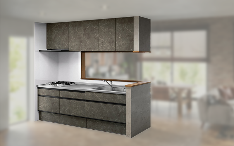 ステディアカラーシミュレーション で キッチンコーディネート をしてみました。 今回はクリナップのデザイナーのコーディネートです!アンティークな雰囲気 に合わせ、落ち着くキッチン+リビングに!カシミアエトープ のキッチン扉に コーリアン の アマンド。