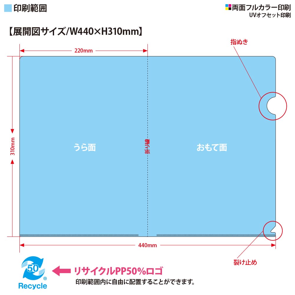 全面印刷クリアファイルデータ作成方法印刷のことなら印刷通販 プリントパック。