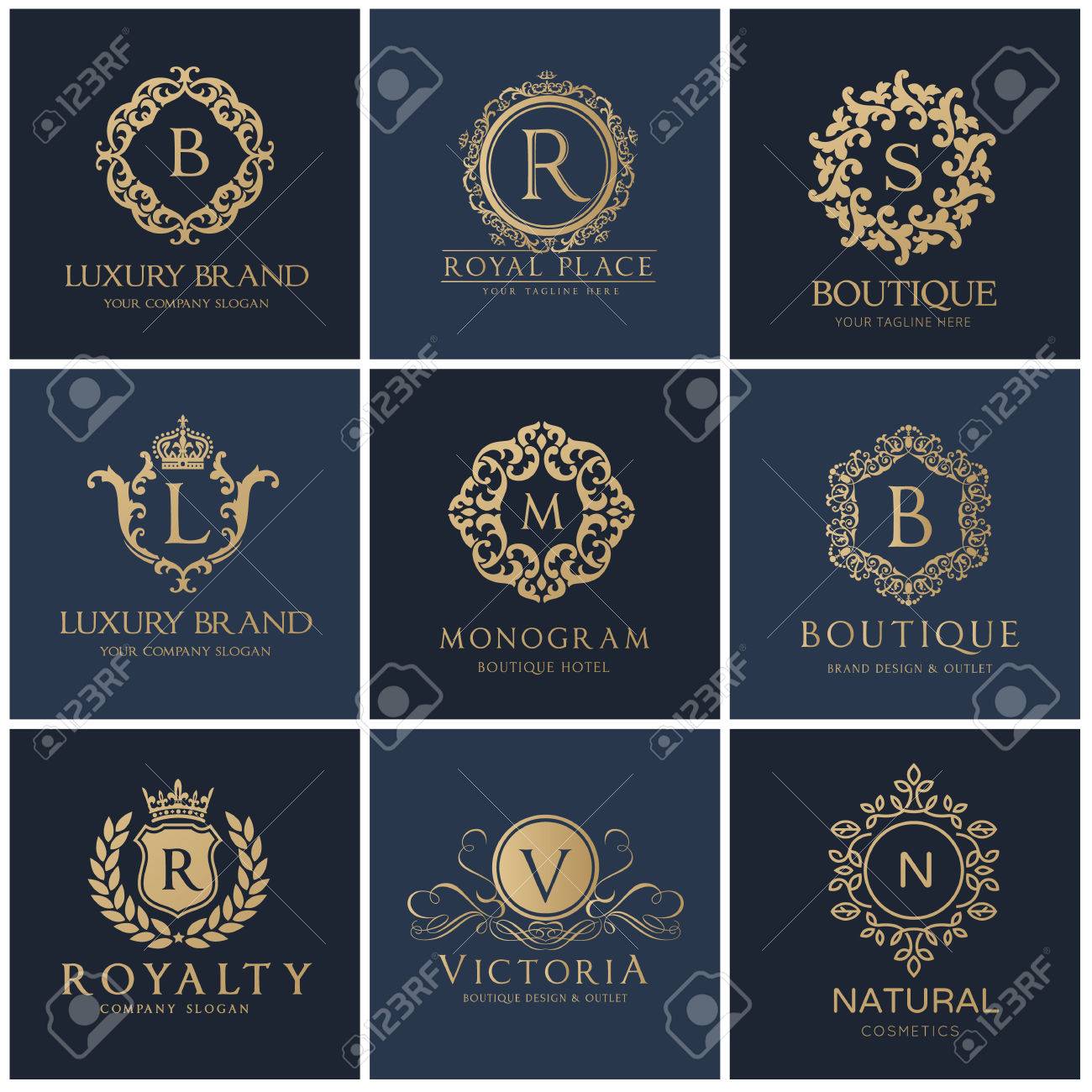 高級ロゴのコレクションのブティック ホテル、リゾート、レストラン、ロイヤリティのデザイン、ビクトリア朝の Idを高級ホテル、ヘラルディック、ファッション、VIP、クラブ、教育の完全なベクトルのロゴのテンプレート。のイラスト素材・ベクター Image77308274。