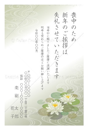 蓮のイラストでデザインされた喪中ハガキbizocean ビズオーシャン。