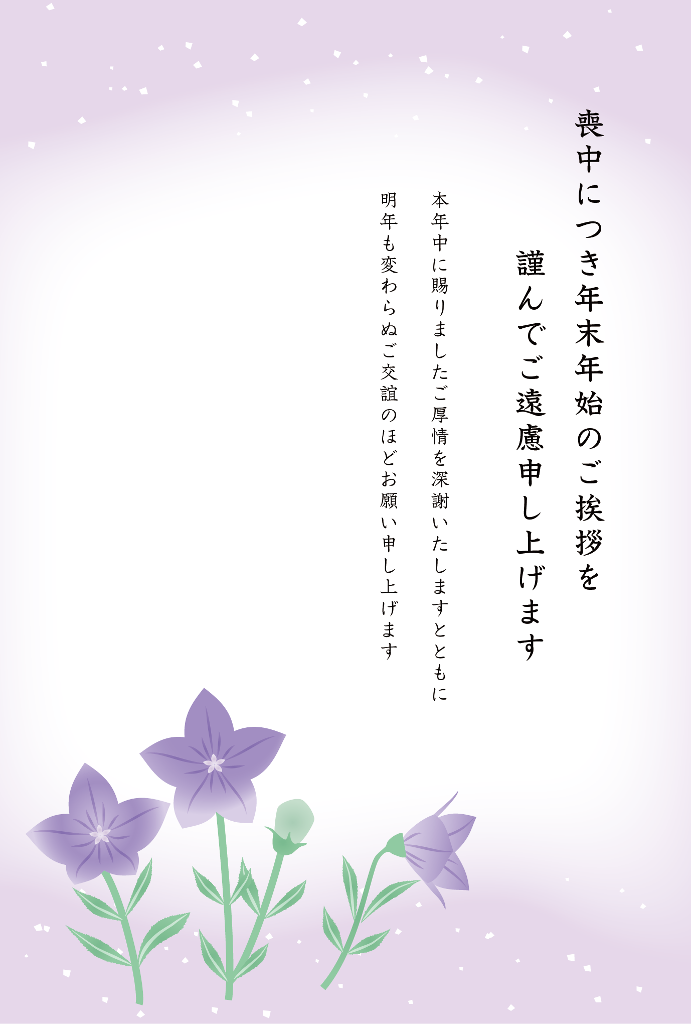 桔梗の喪中はがき無料テンプレート喪中はがき年賀状2026無料午年の年賀状テンプレートと馬のイラスト年賀状 でざいんばんく。
