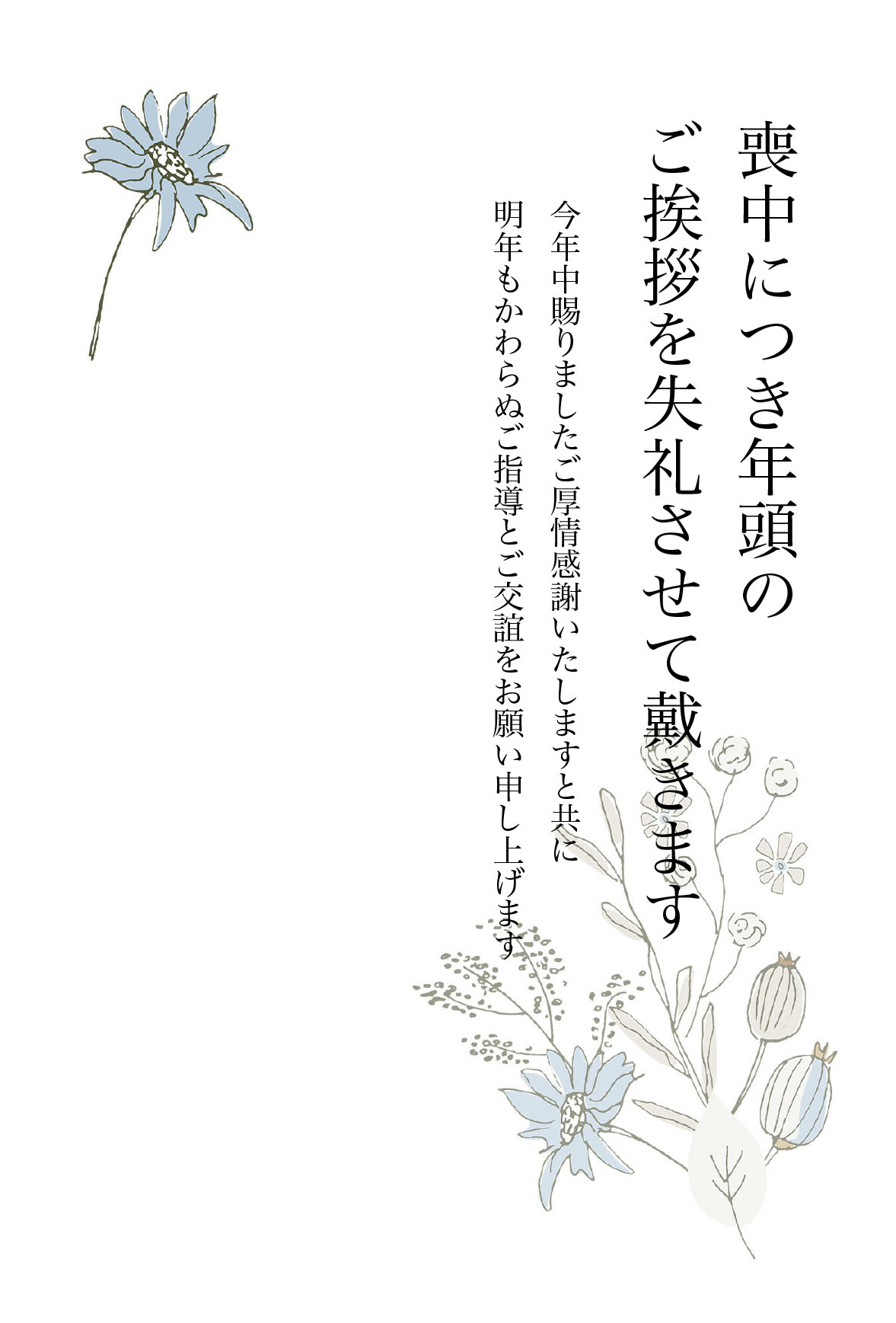 文字無し・花の喪中はがきテンプレートイラスト01イラスト無料・かわいいテンプレート。