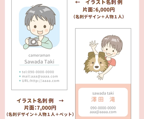 ワンポイントイラストがかわいい名刺つくります ミニキャラ似顔絵付きで個性を演出!オプションで印刷も可能ですココナラ。