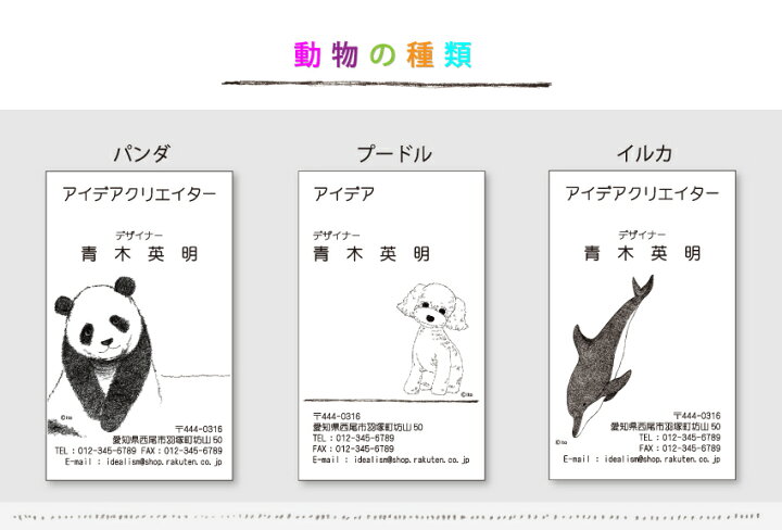 かわいいデザイン名刺手書きの雰囲気と親近感を与えるのは動物の絵の効果でかわいい名刺人気ランキング。