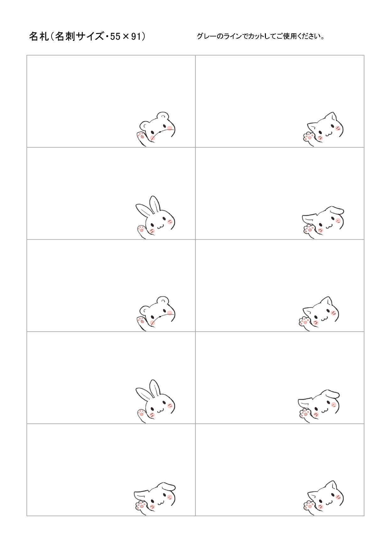 4種類10分割A4のかわいい!イラスト入り名札「名刺サイズ」の無料テンプレート📑無料ダウンロード!テンプレルン📑無料ダウンロード!テンプレルン。