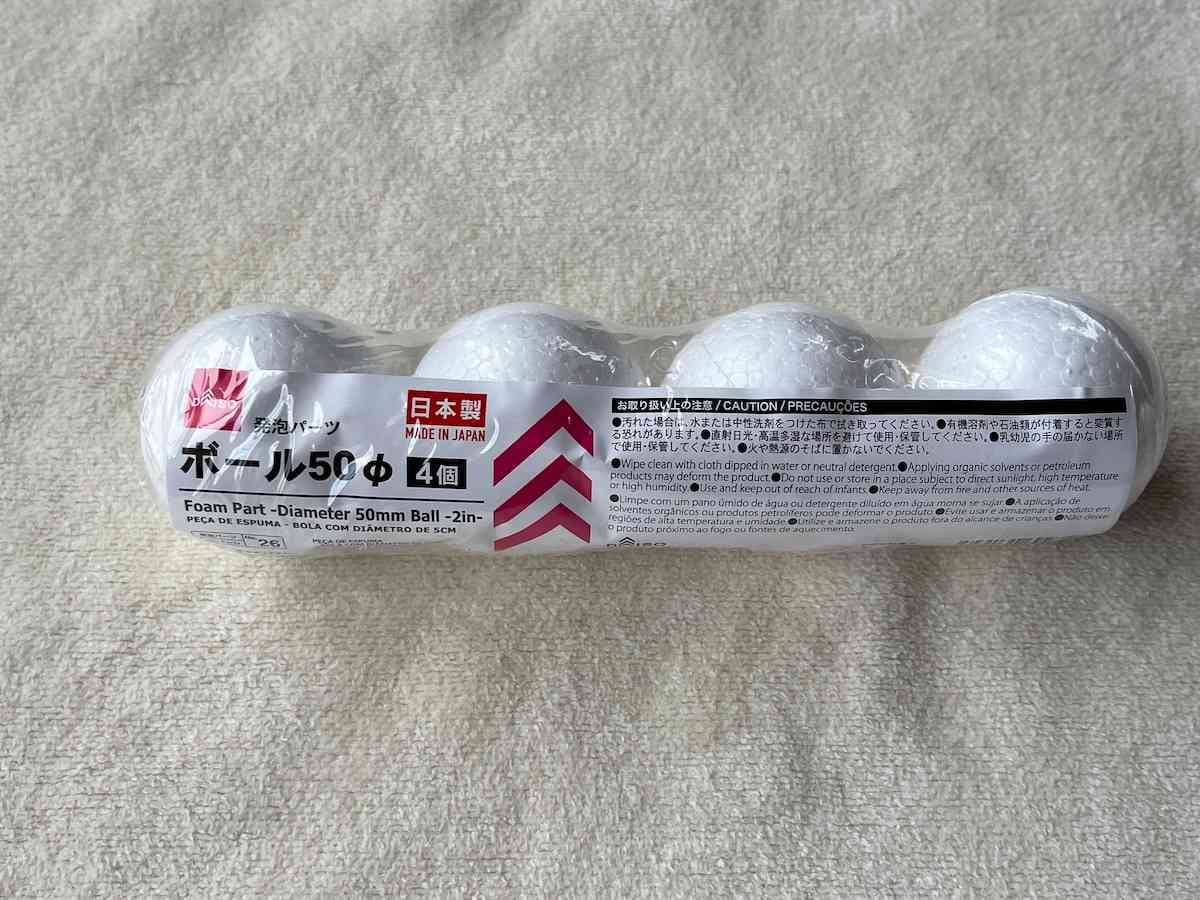 100均ダイソーの発泡スチロールパーツ商品一覧・サイズ。立方体やボール型が100円。