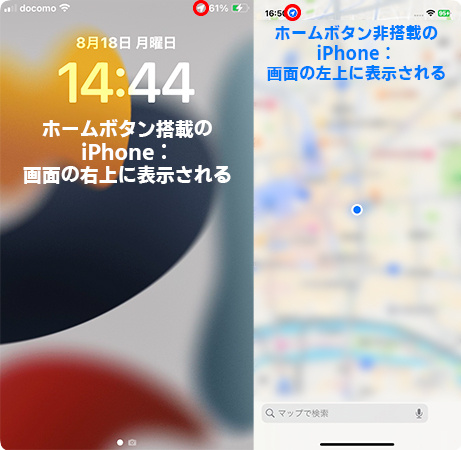 iPhoneの 矢印 鍵 三日月 マークの表示の意味は何?iPhonet。