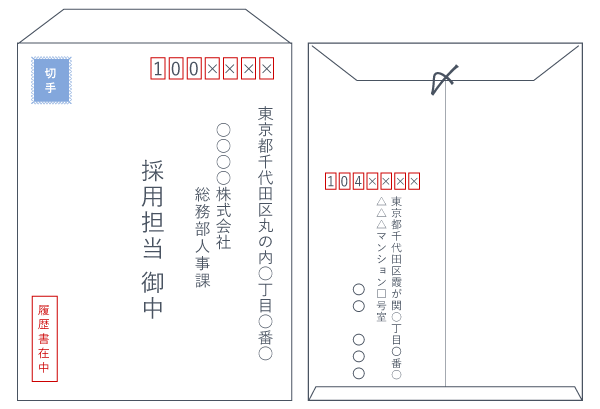 履歴書を入れる封筒の正しい書き方イラスト付きですぐ真似できる!アクセス就活PLUS就活ノウハウをイラストで紹介する情報サイト。