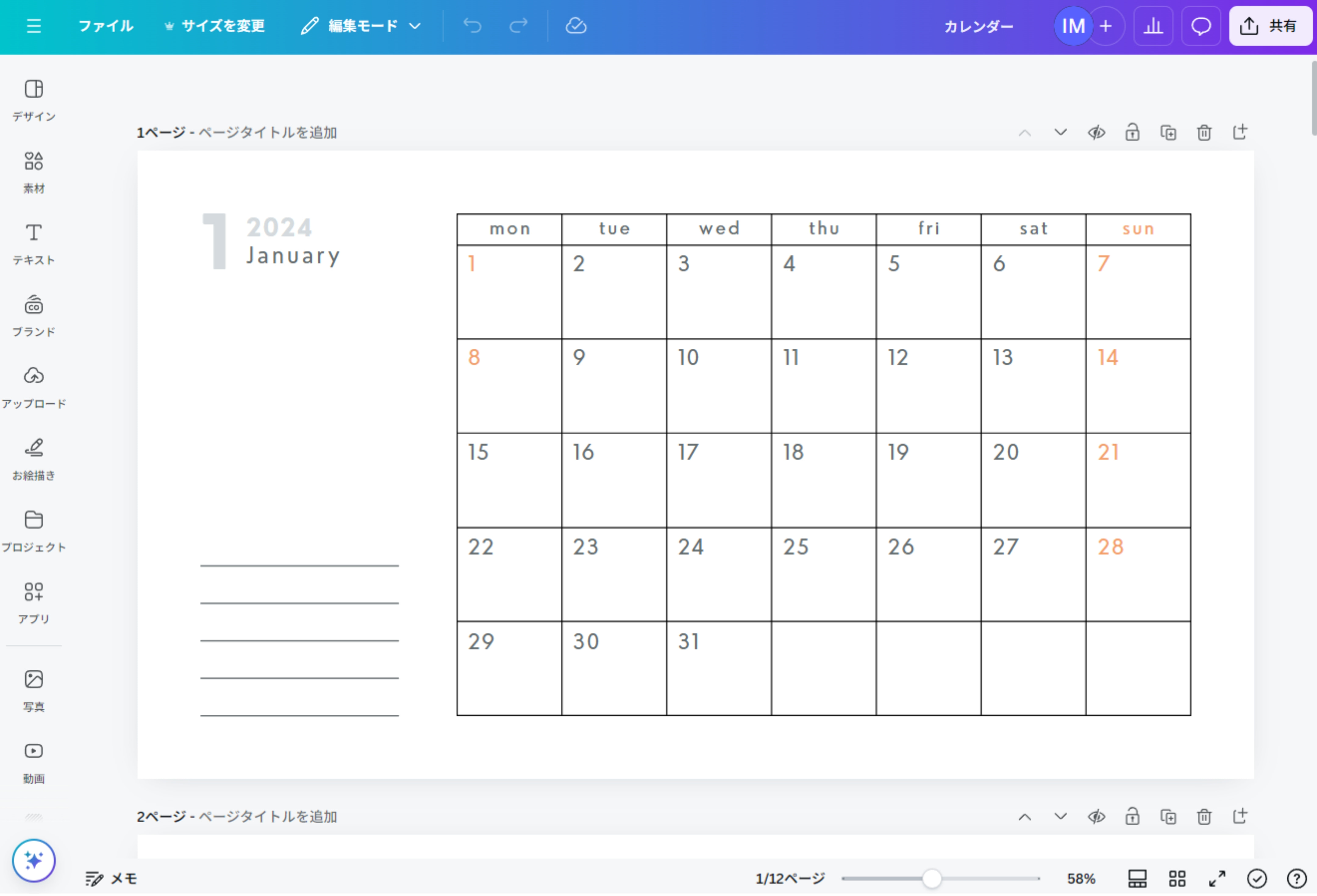 カレンダーテンプレートでおしゃれなデザインを無料で作成!Canva。