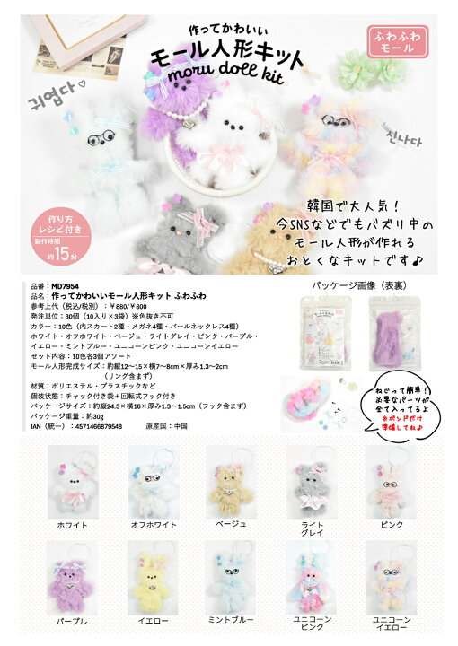 楽天市場 モール人形キット もこもこ 全10色ふわふわ 作り方レシピ付き モールドール キット モールドールキット ぬいぐるみ手作りキット ぬい活ミニぬいぐるみ 動物 手芸 材料 モール ファーモール 手芸用モール モールアート 手作りキーホルダー アクセサリー モール。