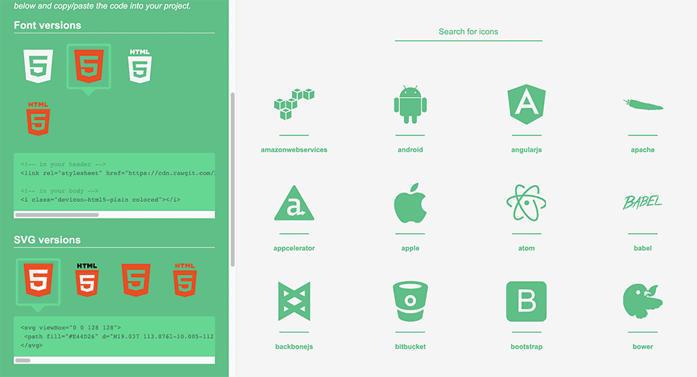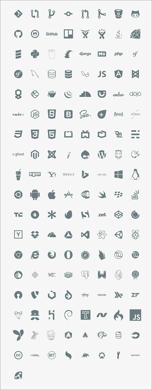 プログラミングやスクリプトやフレームワークなど、さまざまなアイテムが揃ったWeb開発者のための無料アイコン素材 -Deviconsコリス。