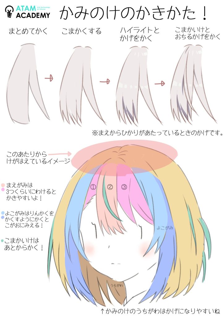 初心者も簡単!髪の毛のイラストの描き方 - オンラインイラスト教室アタムアカデミ。