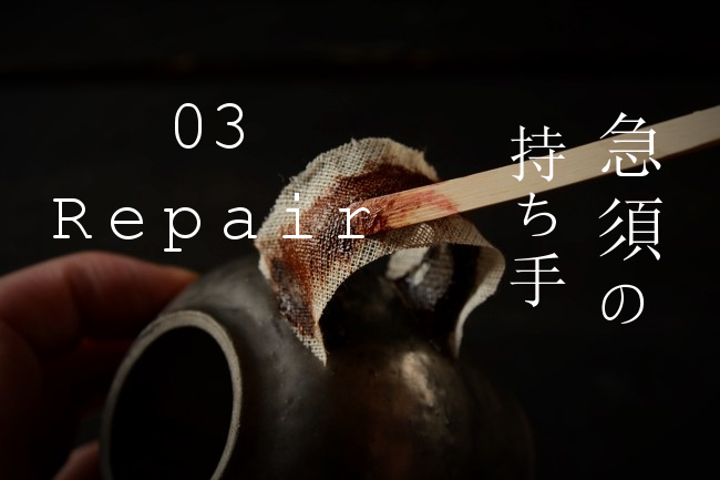 取っ手の壊れた急須の「布着せ」金継ぎ修理03 ~布着せ2回目。