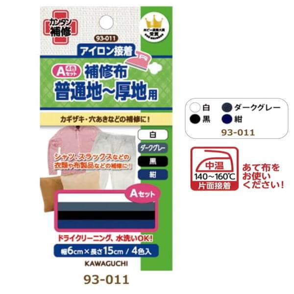 ソーイング道具 :: 接着・補修用品 :: 補修布 4色セット 93-011 普通地用 厚地用 アイロン接着 KAWAGUCHI - 手芸の山久公式サイト。