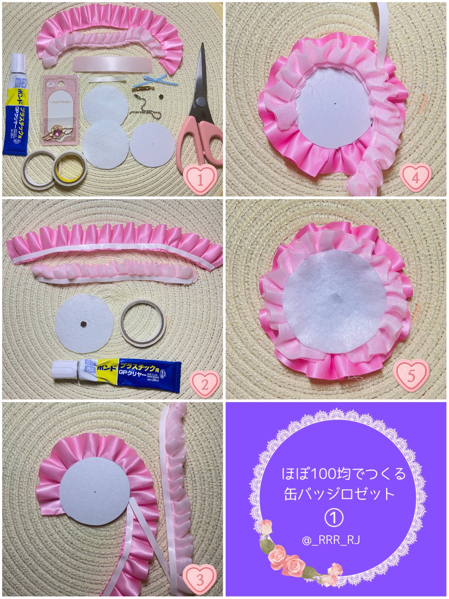 ロゼット ハンドメイド素材 まとめ売り 前アンケート取った缶バッチロゼットの作り方動画です〜!, 編集に撮影の5倍ぐらいかかった 笑,ぜひ可愛いものを作ってみてください!😊💕, ⚠️グルーガンを使う際は熱いので気を付けてください。, 材料はダイソーorセリアです。