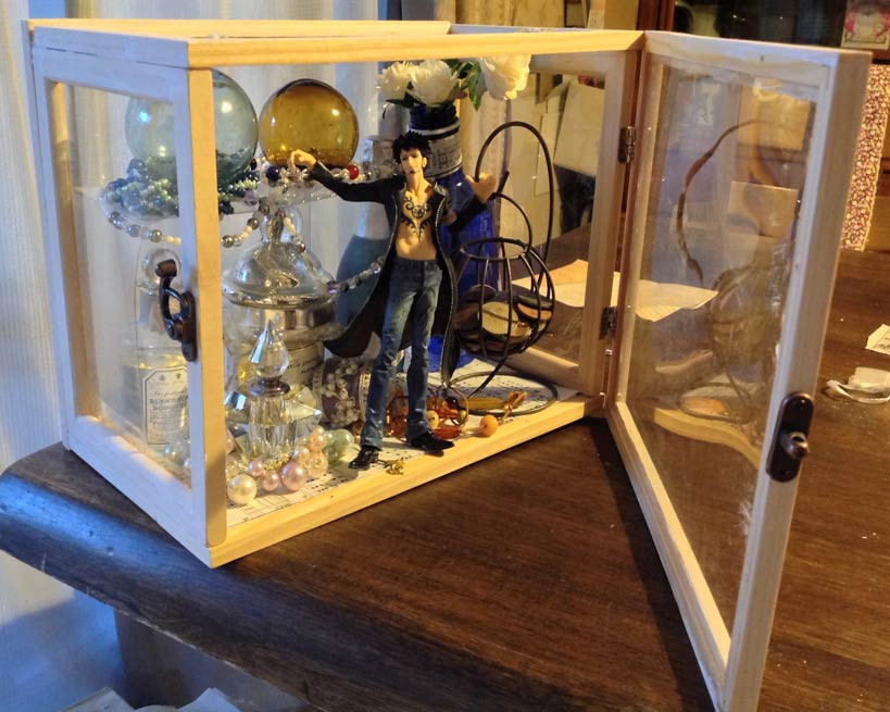 100均自作ケースの中に、蚤の市戦利品と100均雑貨とフィギュアをおしゃれに飾る - 気を楽にしろ、粗忽屋。