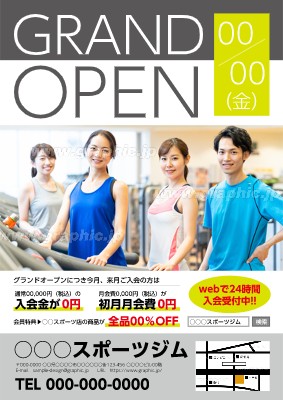 スポーツジム・フィットネスクラブ_開業・オープンチラシ・フライヤーの無料デザインテンプレート - ネット印刷グラフィック。