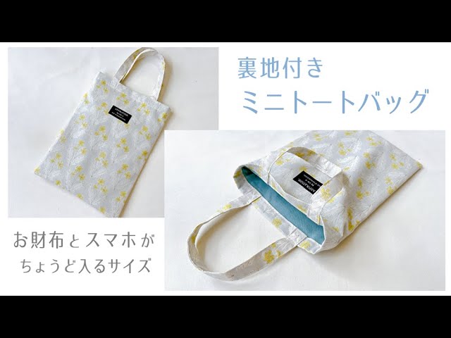 裏地付きミニミニトートバッグ の作り方 ハギレで作れる 小物入れにも - YouTube。