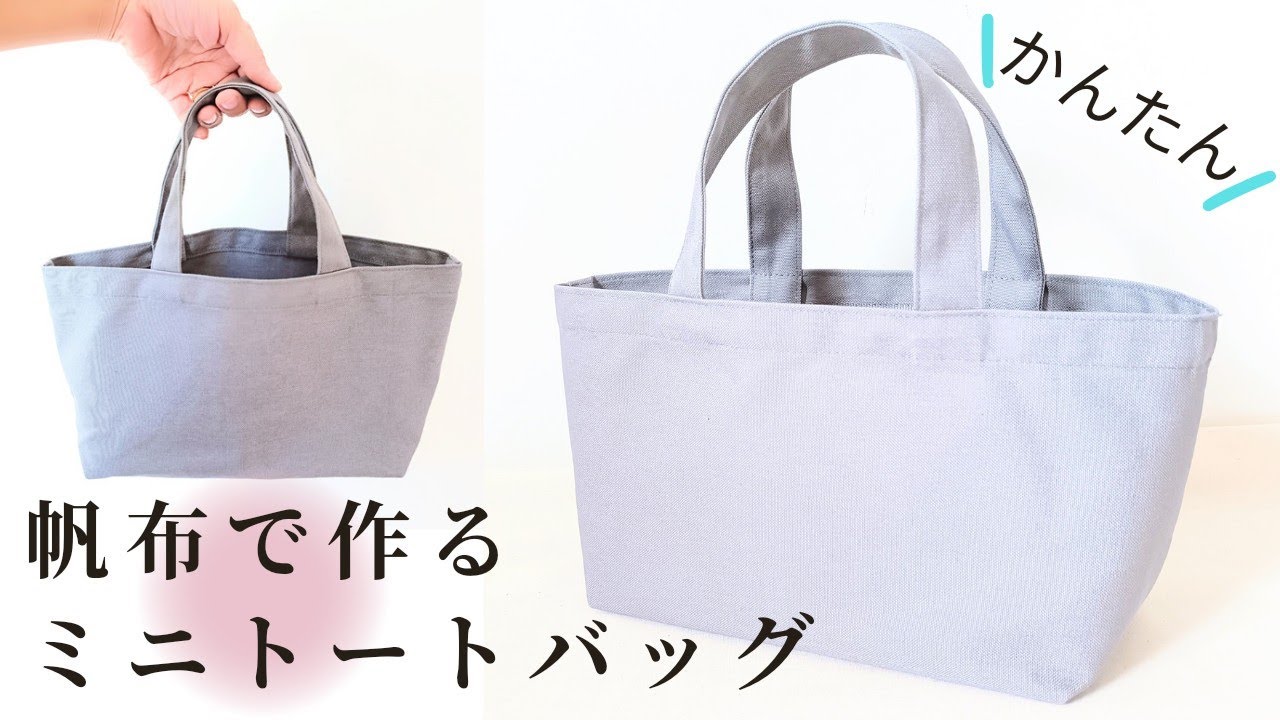 訂正あり概要欄要確認 帆布ミニトートバッグの作り方裏地なしマチありランチトートバッグお弁当袋簡単。