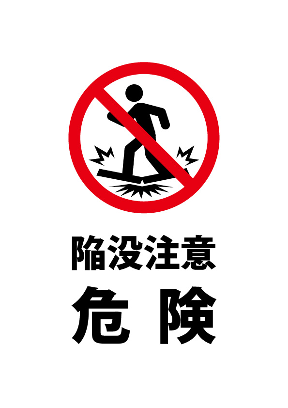 陥没の危険がある注意貼り紙テンプレート無料・商用可能 注意書き・張り紙テンプレート ポスター対応。