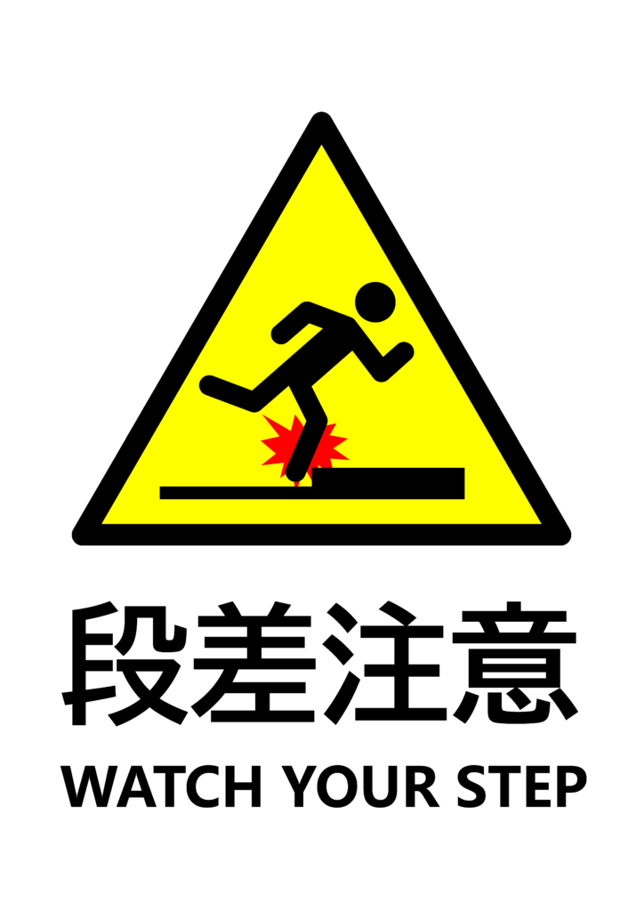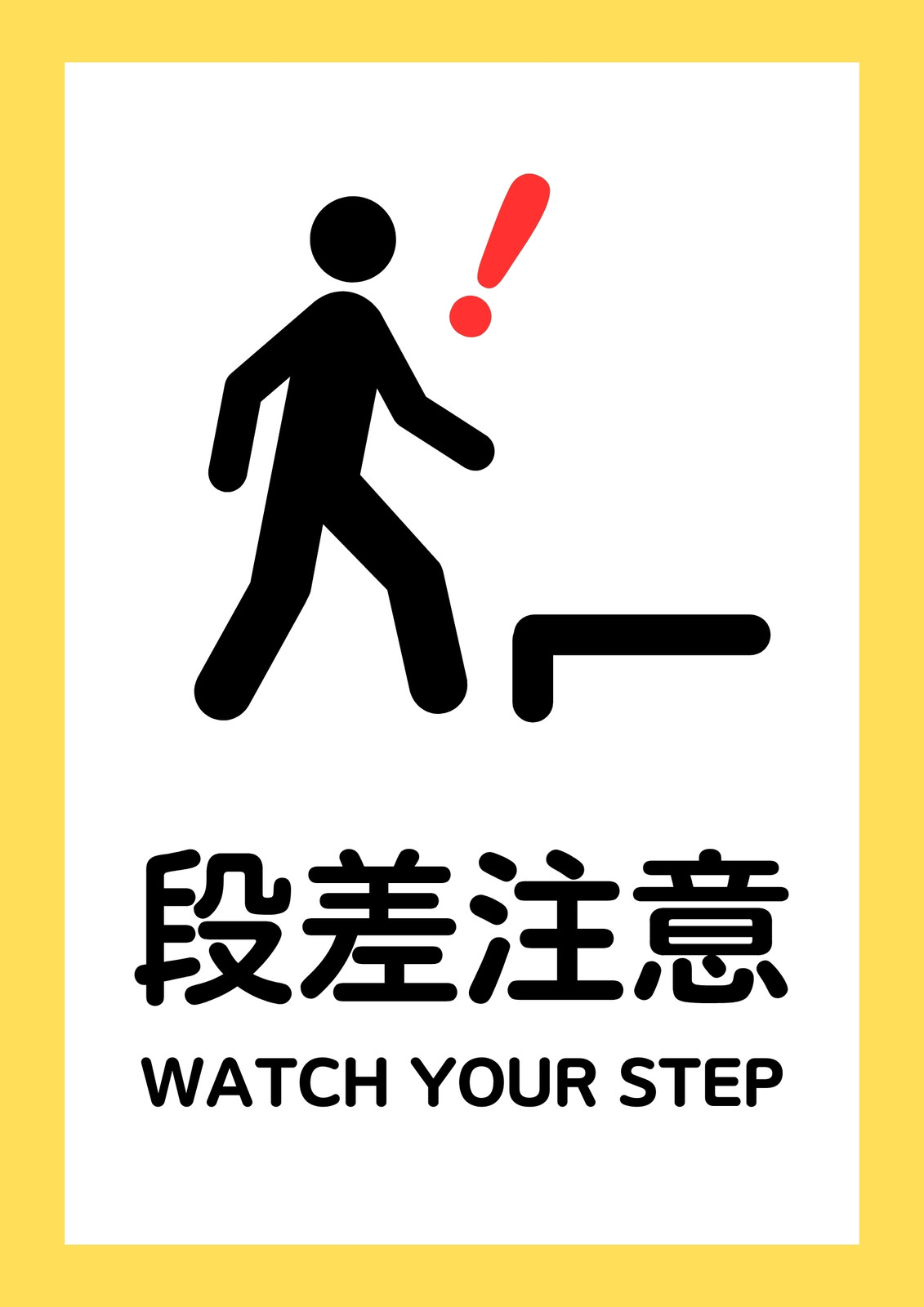 すぐに印刷できる、段差注意貼り紙テンプレート無料・商用可能 注意書き・張り紙テンプレート ポスター対応。