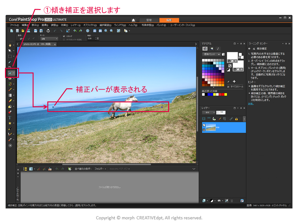 ペイントショップの使い方3 パソコンで写真補正 加工 :傾きやひずみを修正webサイト作成のmorph モーフ。