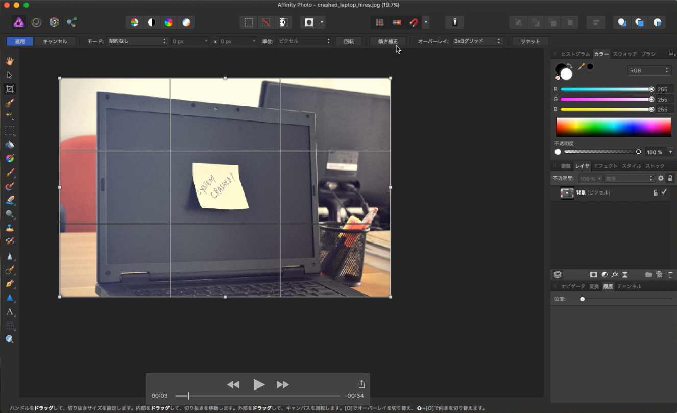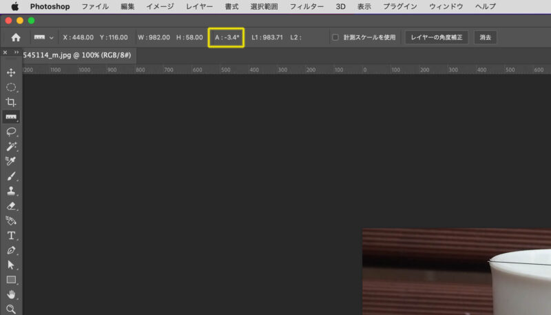 Affinity Photoで傾きを補正する ものさしツールmuchbow。