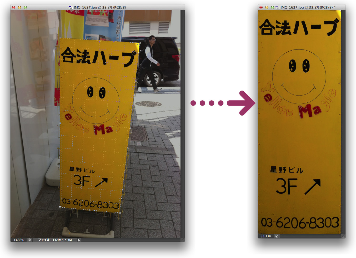 Photoshop 斜めの被写体を真正面にする方法 - デザインバウム。