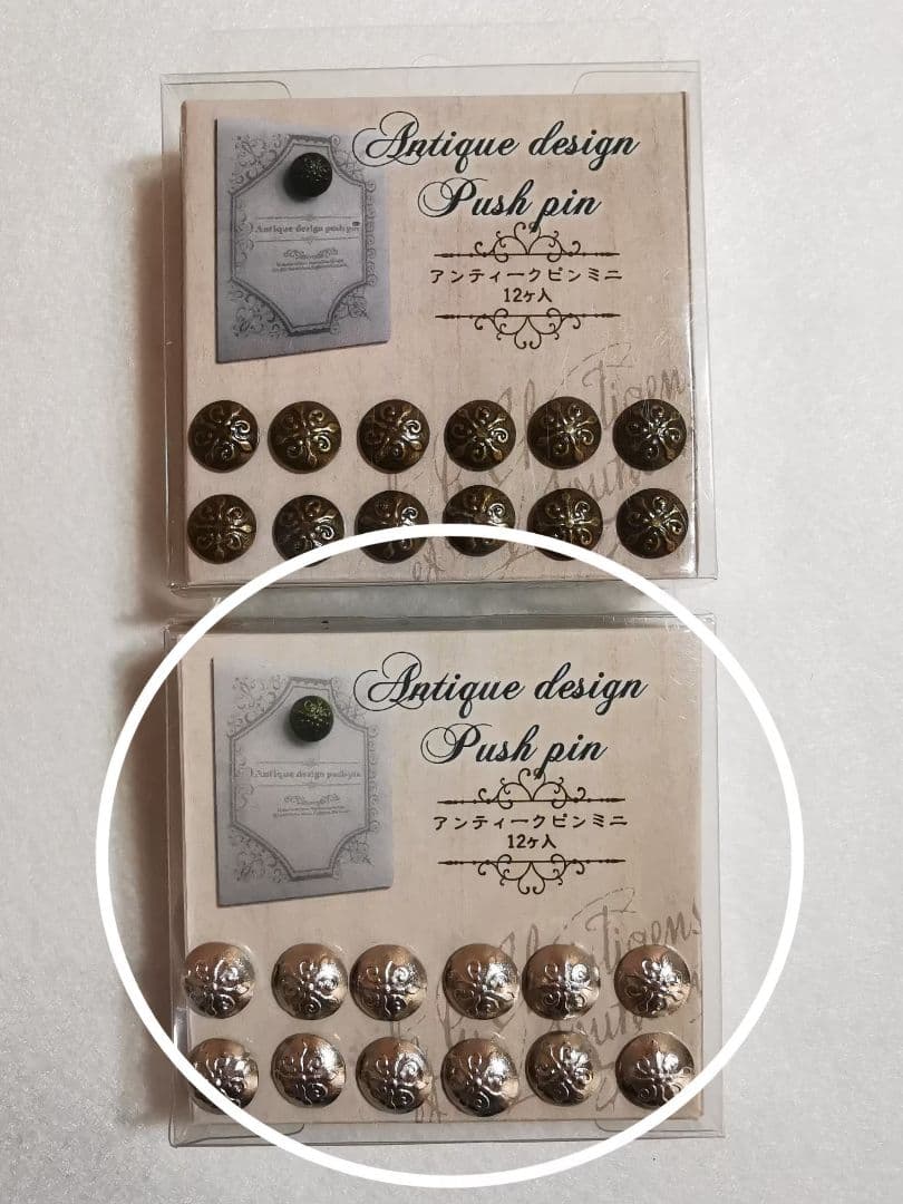 画鋲 おしゃれ アンティーク調 押しピン セリア シルバー調 2点① E0175。