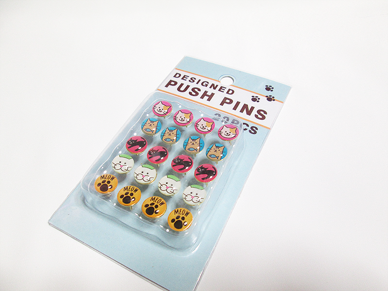 レビュー 100均 セリア デザインプッシュピン 20P キャット 猫絵柄の画鋲!これですよ!これ!ZERO-NETAⅡ。