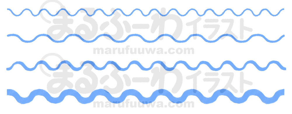 無料フリー素材 背景透過 水彩風&線画 色々な太さの手書きの波線のイラストかわいい無料素材♪まるふーわイラスト。