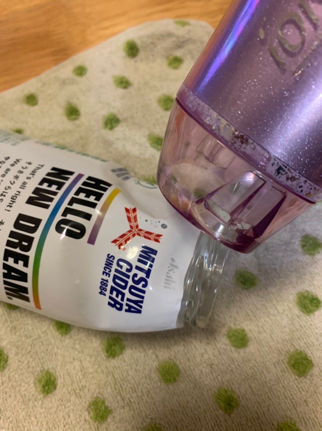ちいかわのちぃちぃLemonのボトルラベルをどうにか真っ直ぐになるよう加工して綺麗に保管したい 今更。