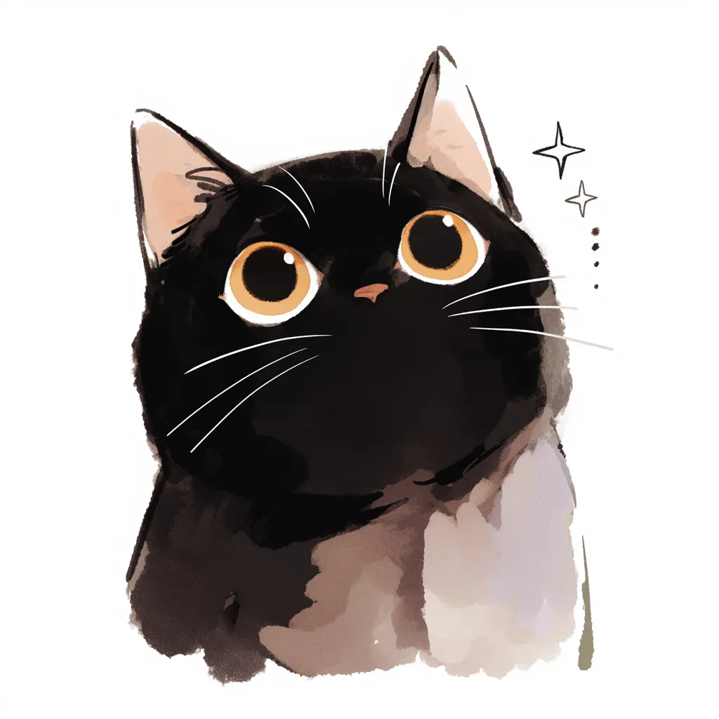キラキラお目々の黒猫アイコンイラスト・フリー素材なら「シンテリ」。