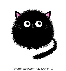 黒い丸いふわふわの猫アイコン。顔の頭部尾。子猫は太っている。かわいい漫画のキャラクター。かわいい赤ちゃんのペット動物。ノートブックカバー、Tシャツ、グリーティングカードの印刷。フラットデザイン。白い背景。ベクター画像」のベクター画像素材 ロイヤリティ。