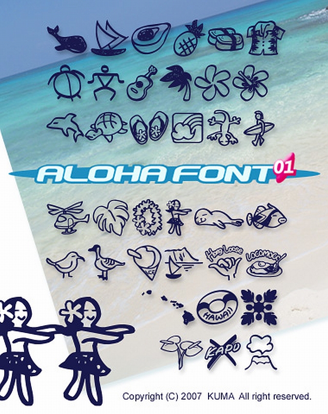 無料ダウンロードハワイなゆるゆるイラスト~アロハフォント。