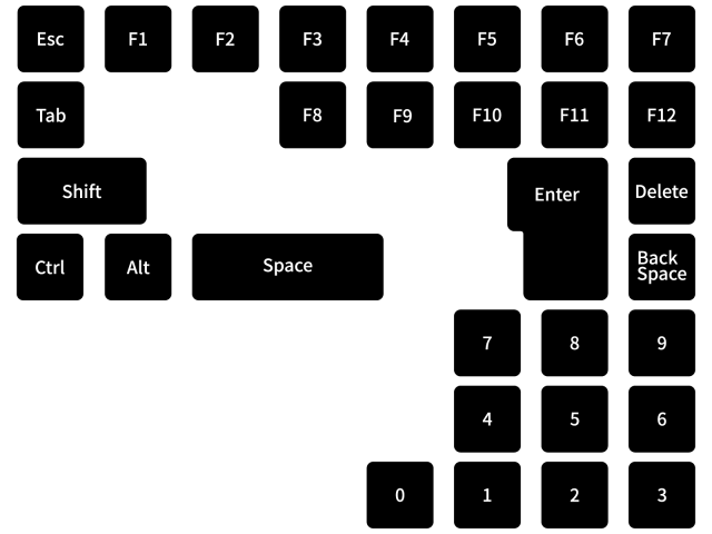 色塗りできるキーボード・キー配列 シルエット のイラストぬれよん-ぬれるフリーイラスト。