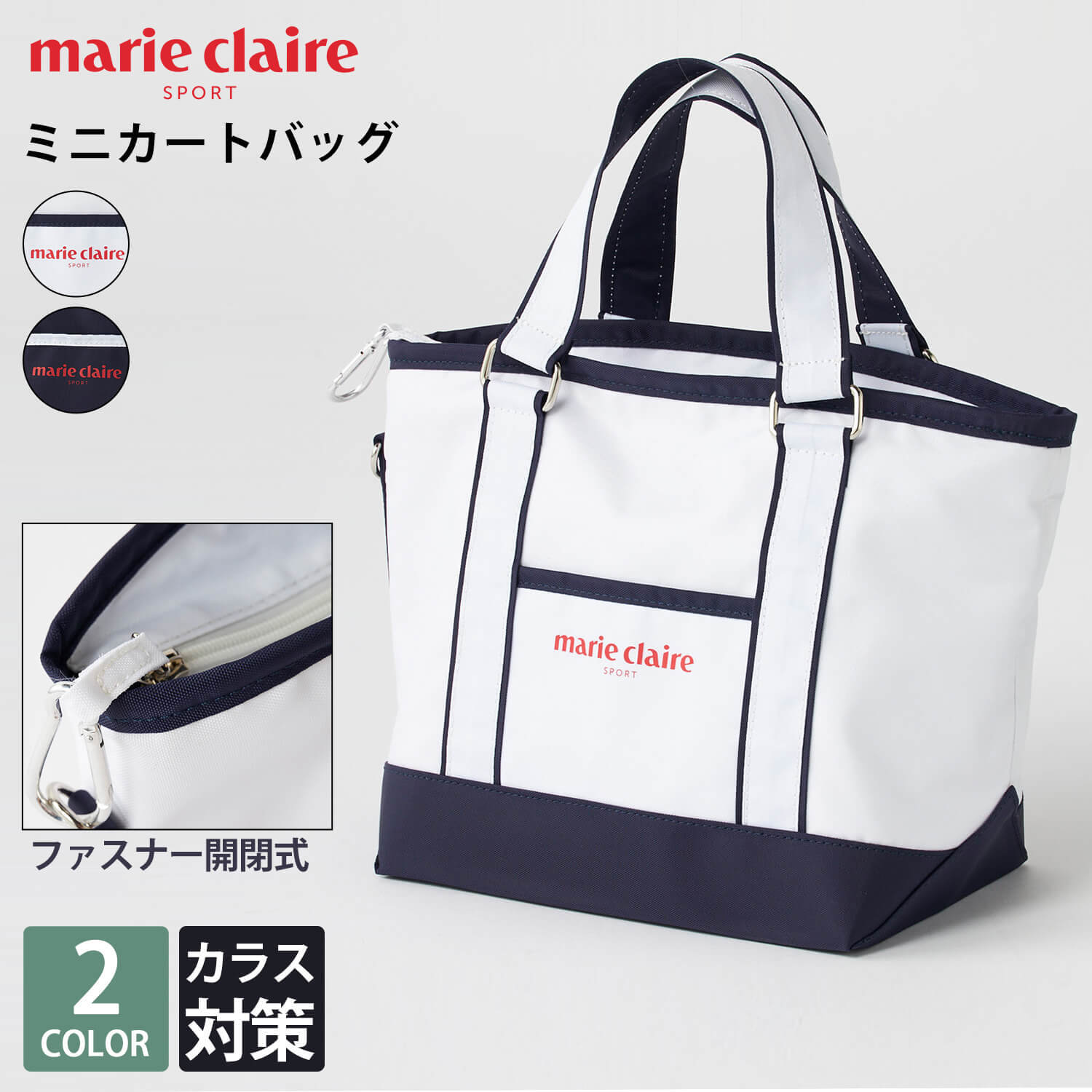 marie claire GOLF マリクレールゴルフ レディース ラウンドバッグ カートバッグ カラス対策 ブランド ロゴ カラビナ付き 落下防止ゴルフバッグ 仕切り付き 手提げバッグ ミニ トートバッグ おしゃれ かわいい 白 紺 2024FW outfit -Karlas カルラス -プレゼント。
