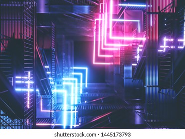レーザーライトの3dイラストを備えた未来的なネオン点灯技術廊下, Sfの背景, レーザーの背景, ネオン抽象背景壁紙画像素材無料ダウンロード -Pngtree。