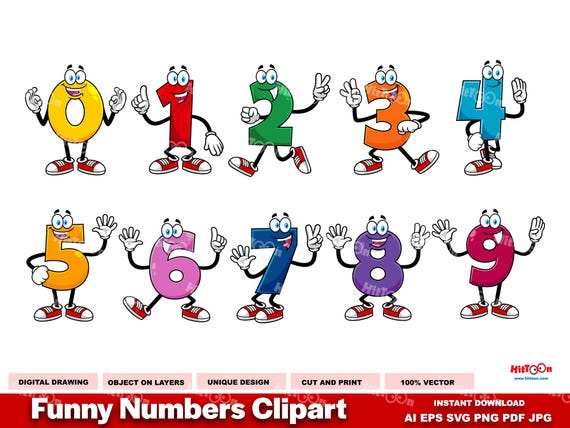 10個の面白い数字の漫画キャラクター - デジタルクリップアートベクターグラフィックバンドル - Ai、EPS、SVG、PNG、Jpg -商用利用無料 - Etsy 日本。